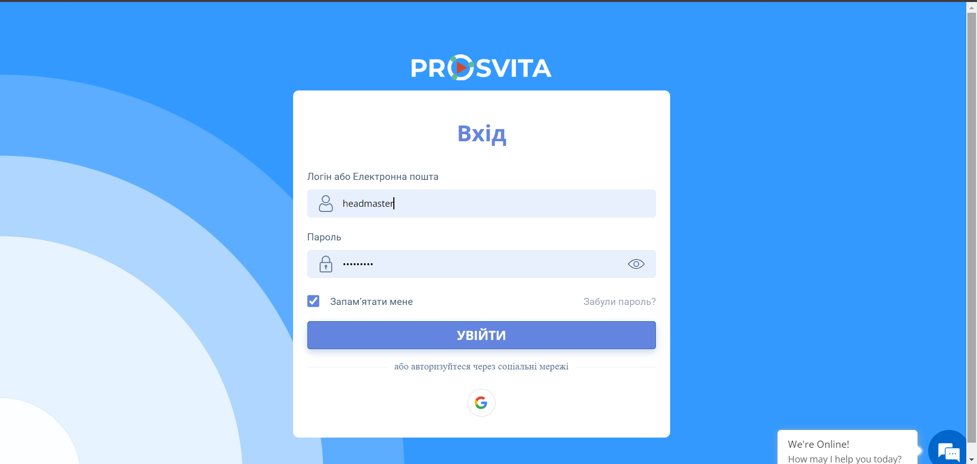 - Перейдіть за посиланням: https://dashboard.prosvita.net/login/.