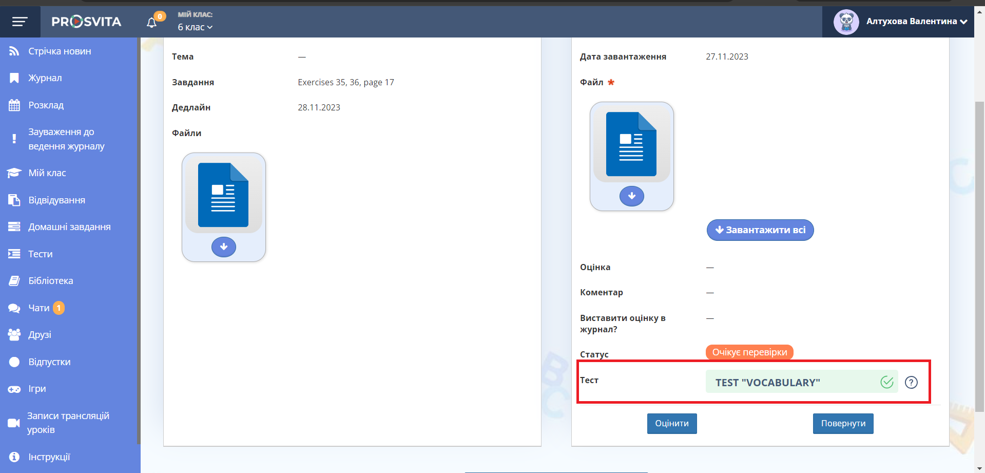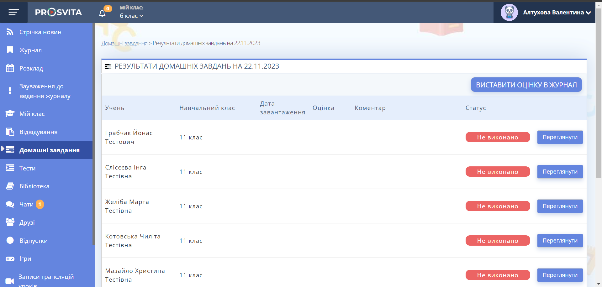 10. Натисніть кнопку "Виставити оцінку в журнал" для перенесення оцінок у журнал.