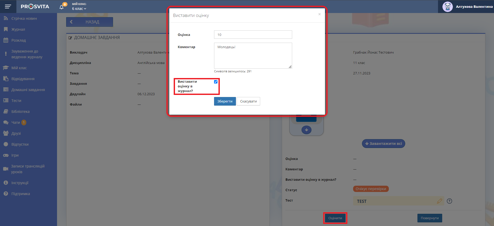 9. За потреби поставте галочку біля "Виставити оцінку в журнал".