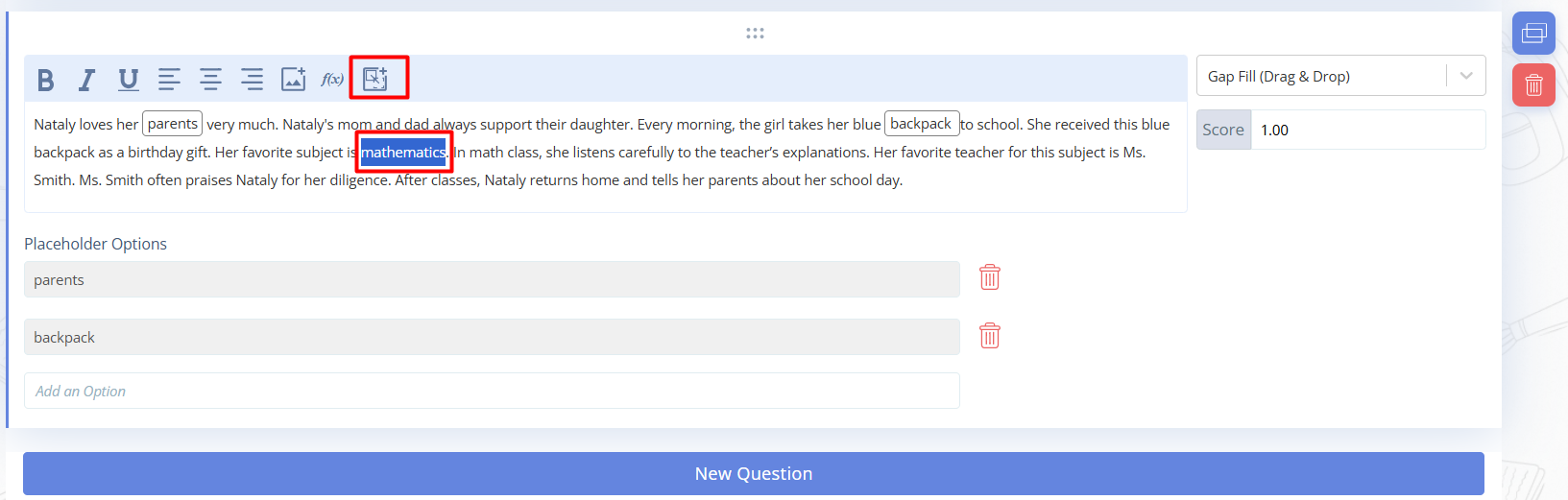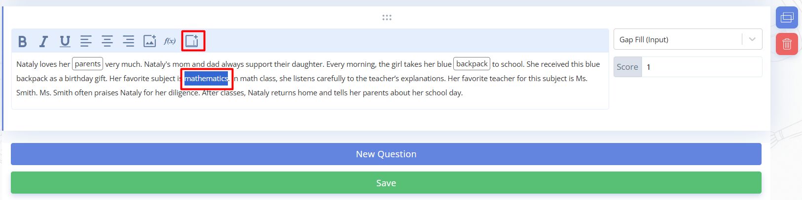 Fig. 5. Creating “Gap Fill (input)” questions