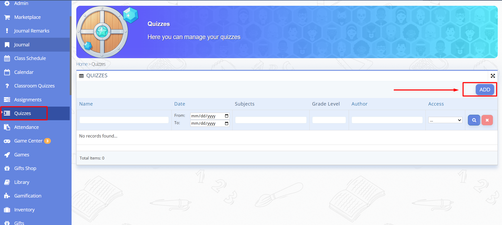 Go to the "Quizzes" section in the Menu on the left side bar.