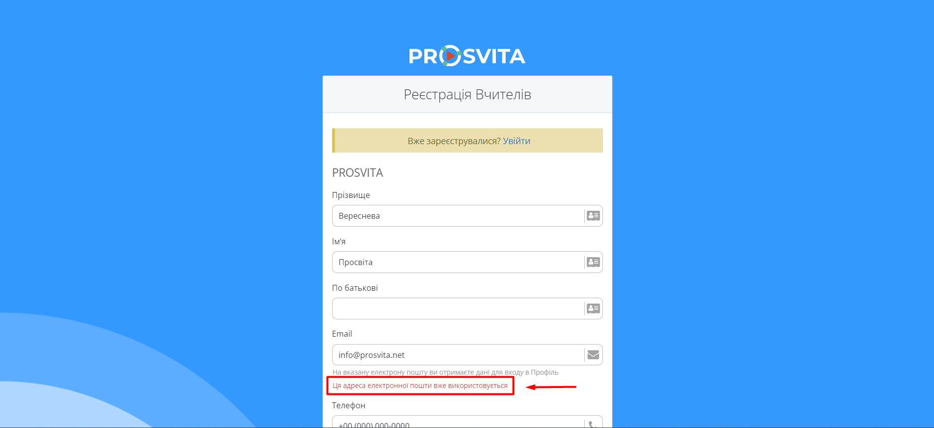 Типові помилки під час реєстрації¶