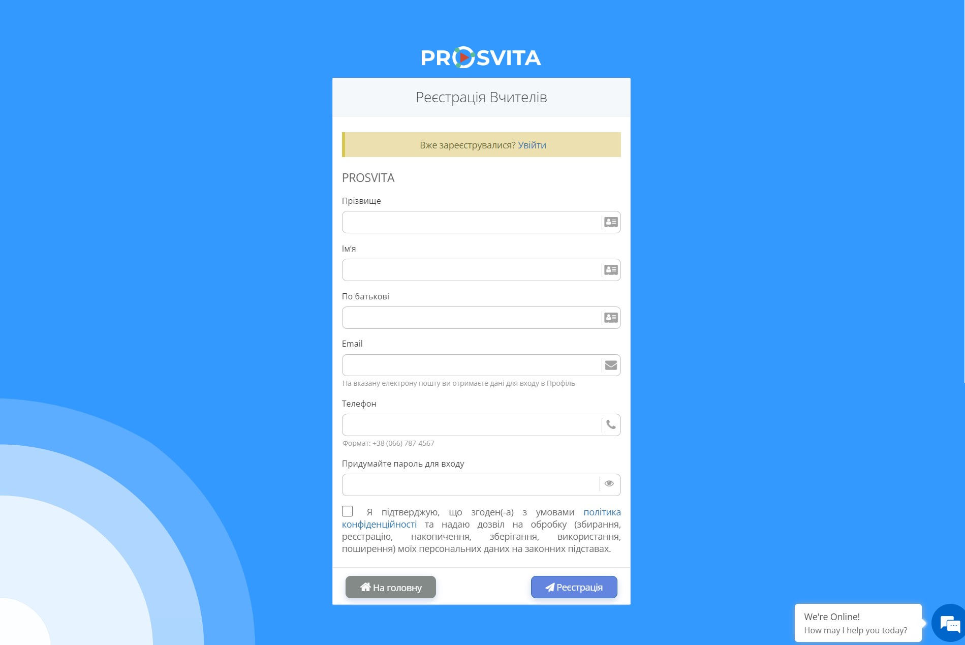Реєстрація вчителів