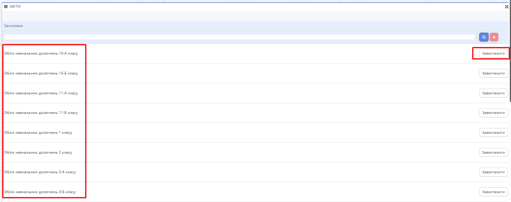 - Облік навчальних досягнень (по класам);