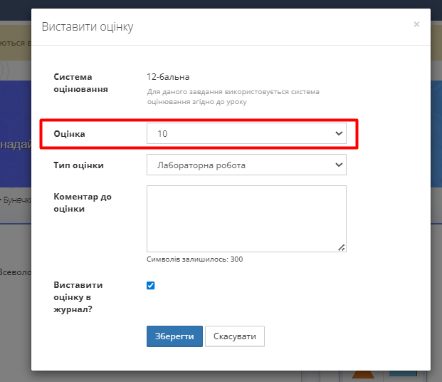 - За потреби поставте галочку біля "Виставити оцінку в журнал".