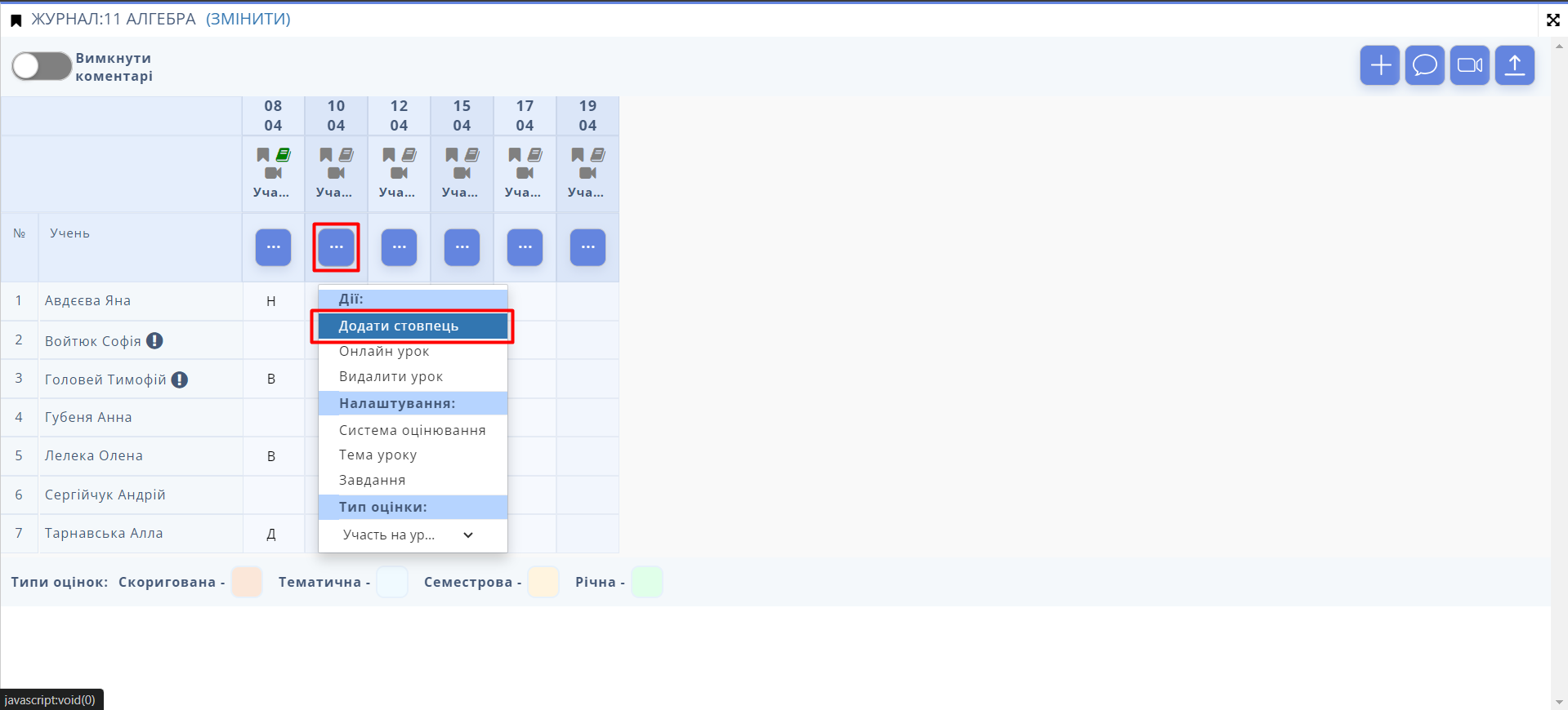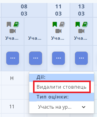 ⚠️ Перед видаленням стовпця видаліть усі оцінки та примітки про відсутність у ньому. Інакше видалення буде недоступним.