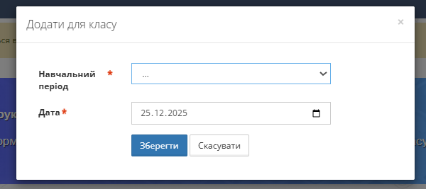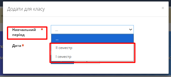У полі Навчальний період виберіть потрібний варіант (наприклад):
