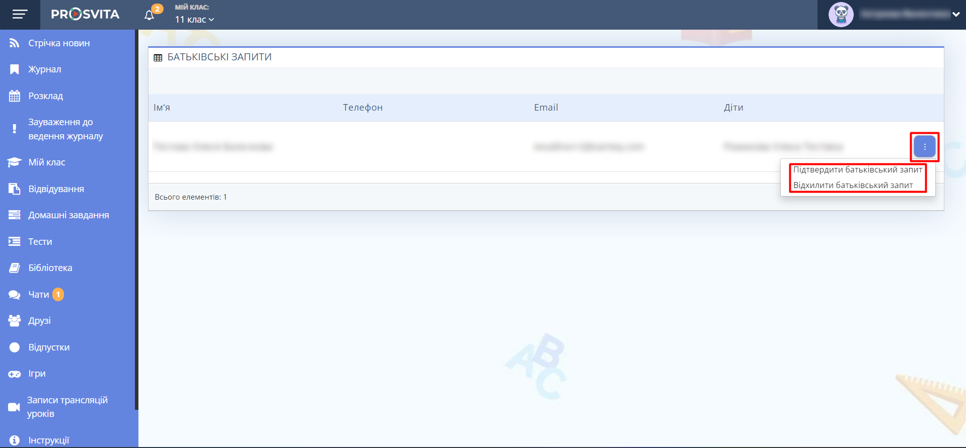 - Знайдіть повідомлення "Є нові батьківські запити".