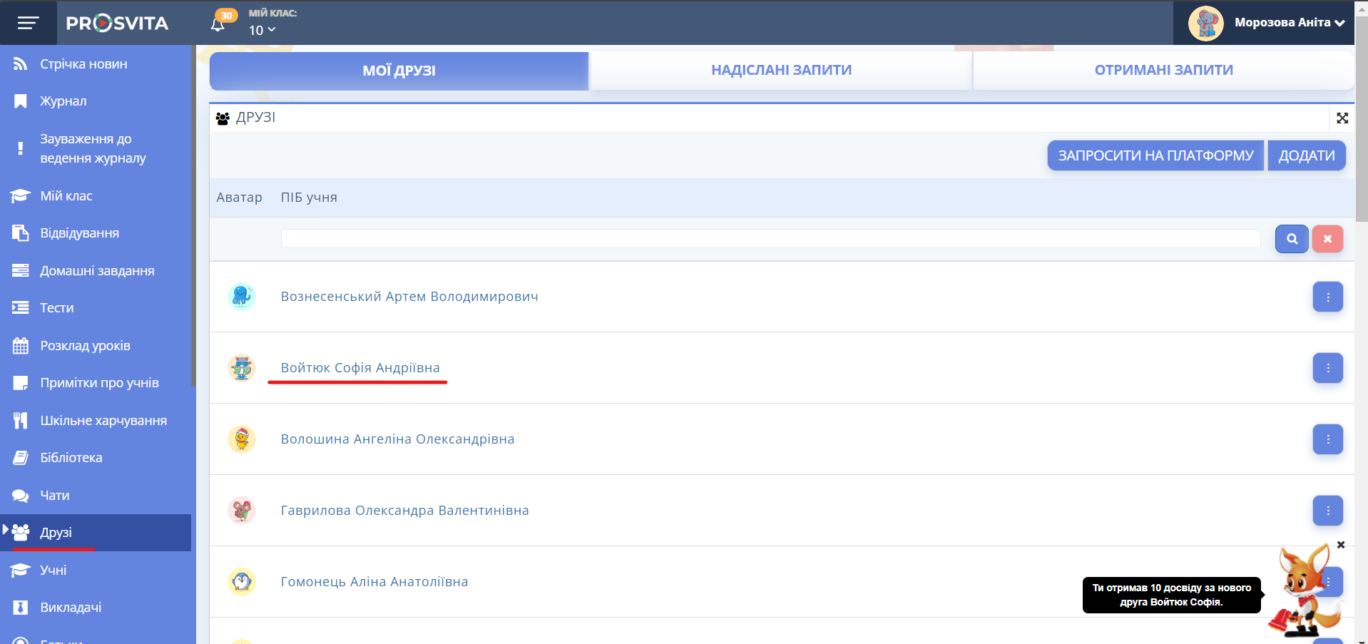 Щоб опублікувати новину на сторінці друга: - Перейдіть у розділ «Друзі». - Натисніть на ім’я потрібного друга.
