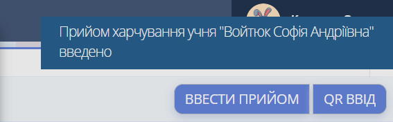 Після успішного сканування з’явиться повідомлення про введення прийому харчування.