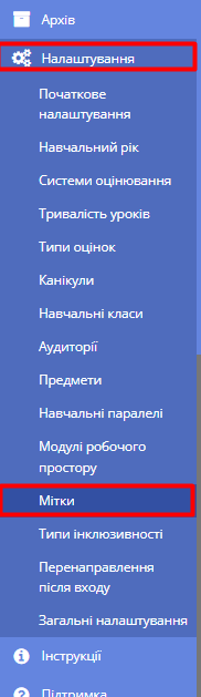 Після активації модуля у розділі "Налаштування" з'явиться пункт "Мітки".