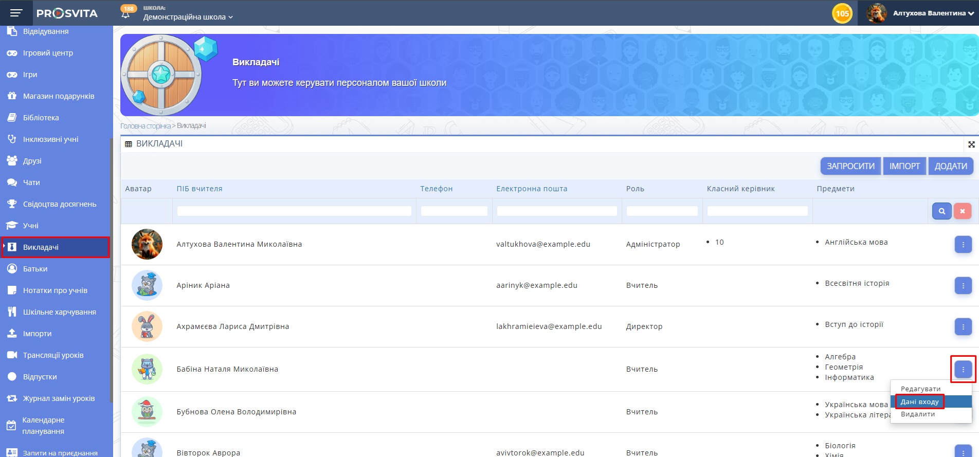 Зміна даних входу вчителя (для адміністрації школи)¶