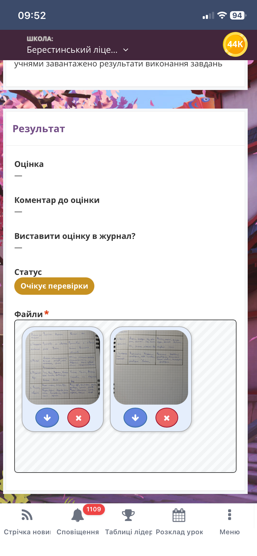 Рис. 2 — Картка уроку у мобільному щоденнику
